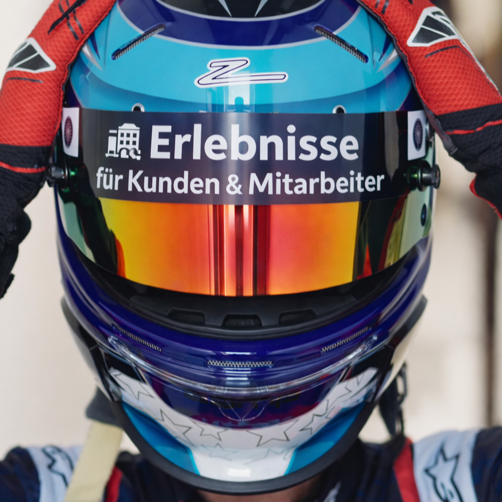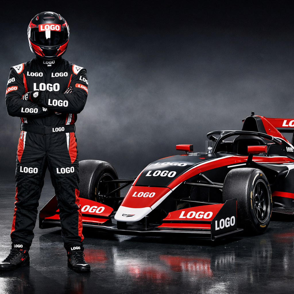 - Logo auf Rennwagen, Helm und Rennanzug